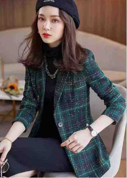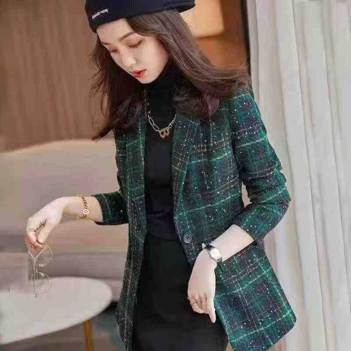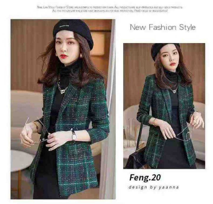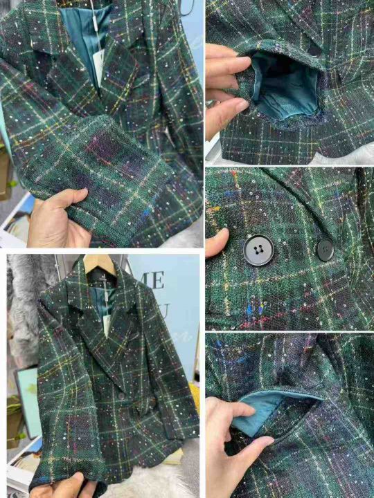捡漏35件复古洋气绿色气质闪闪格子中长款时尚修身西装外套,独立防尘袋装,码数S-XL,货号108#9