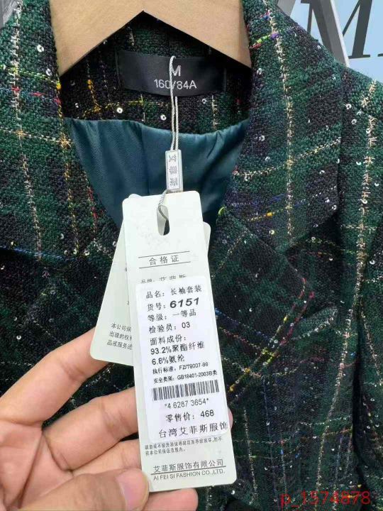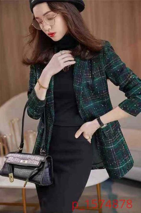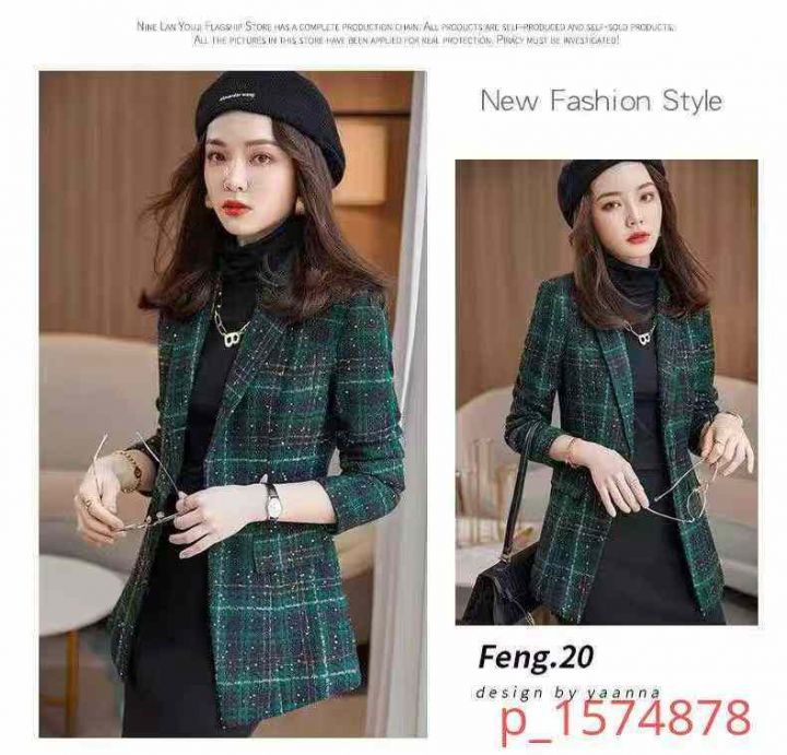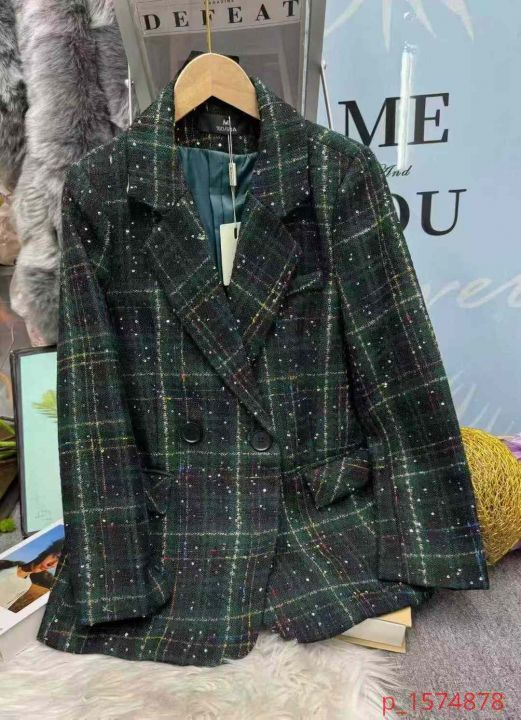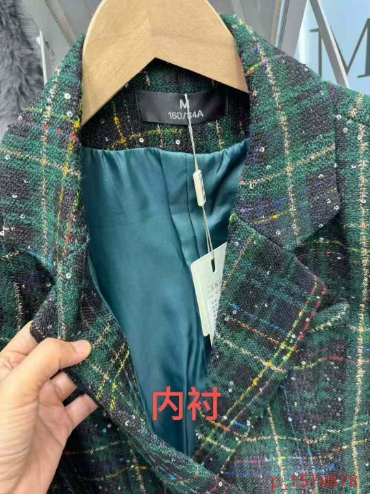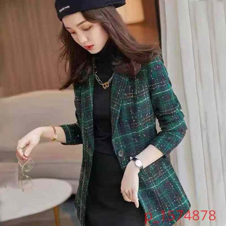 捡漏35件复古洋气绿色气质闪闪格子中长款时尚修身西装外套,独立防尘袋装,码数S-XL,货号108#9 _@_@
