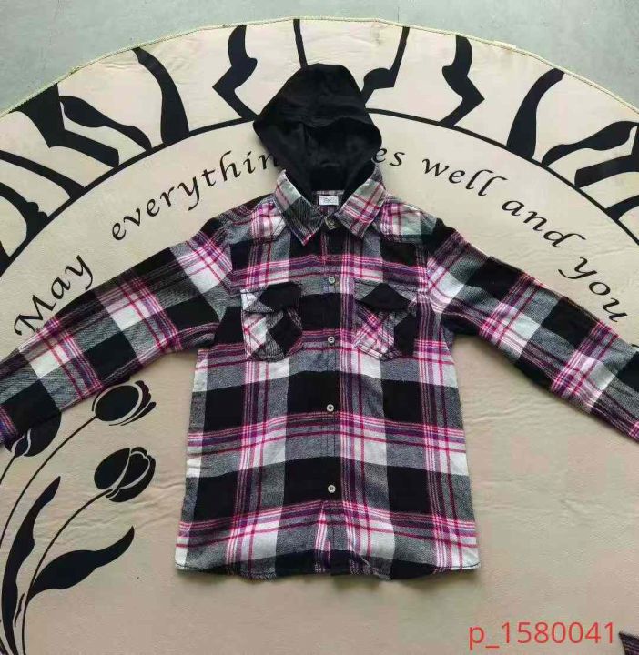 童装纯棉格子春秋长袖衬衣 数量350件左右 尺码6Y--12Y 带帽跟无口袋少量 其余都是图6带口袋 纽扣三个颜色 独立包装 货品干净整洁质佳 _@_@
