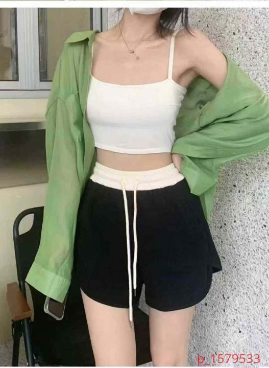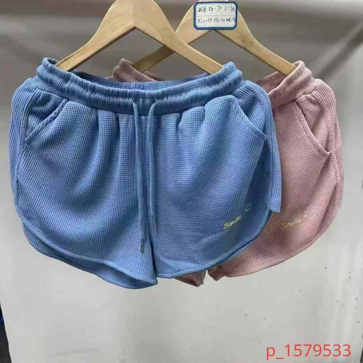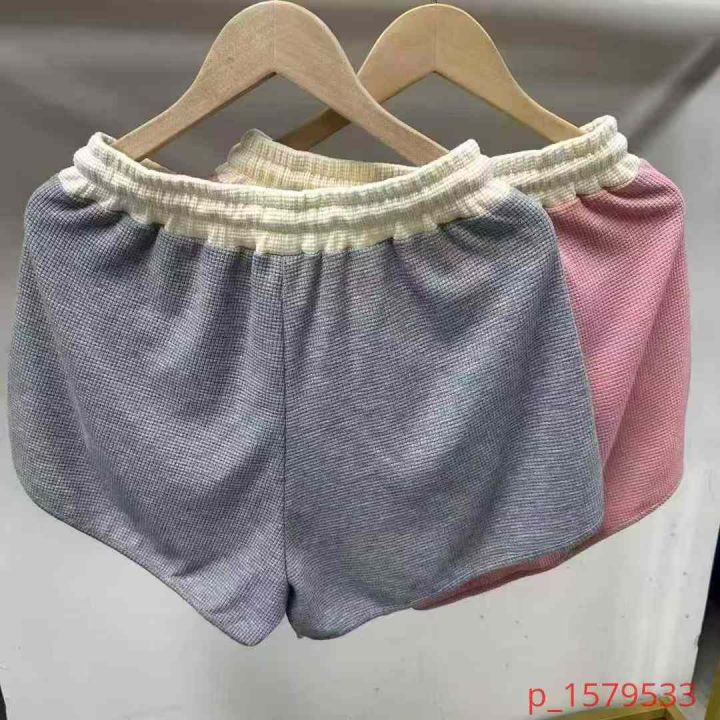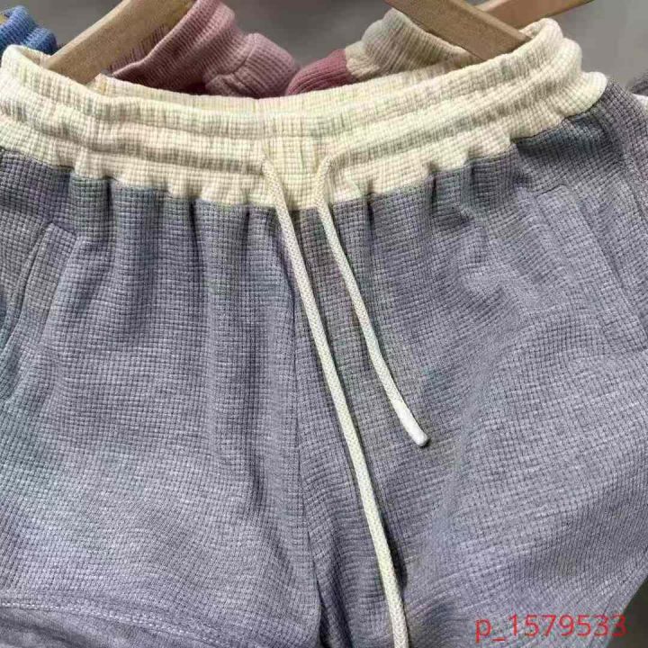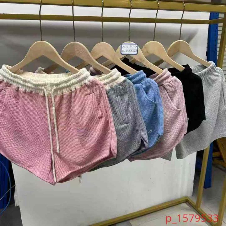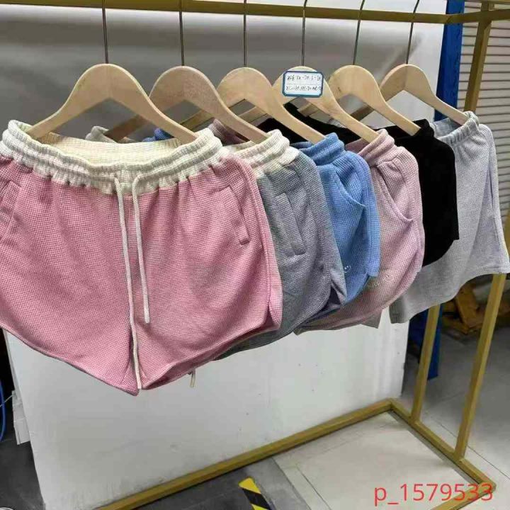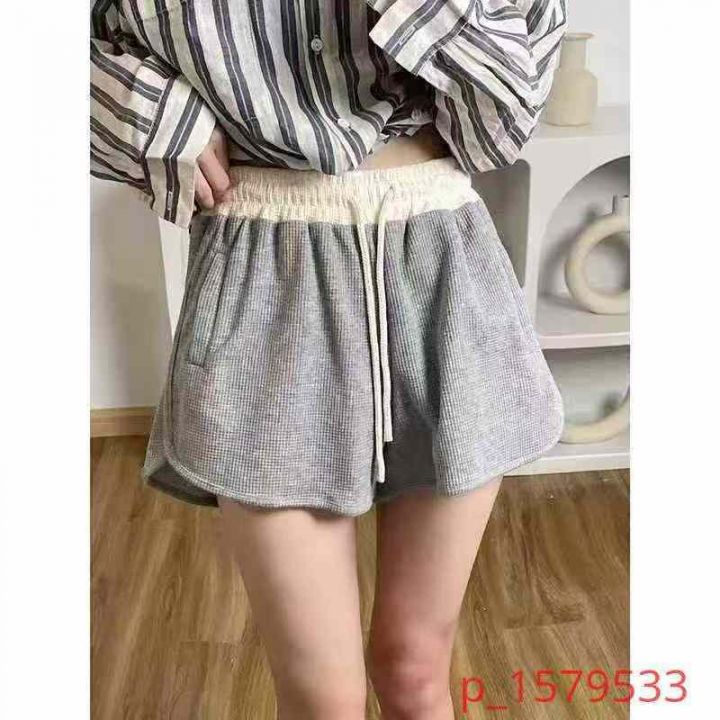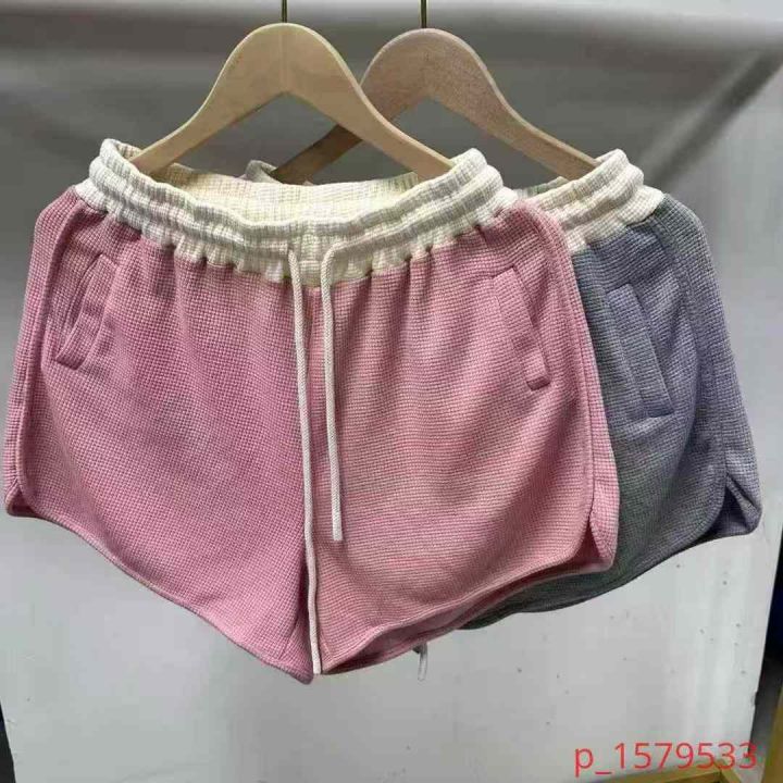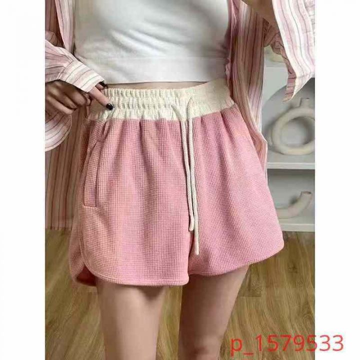 华夫格纹外穿运动短裤女夏季高腰热裤百搭休闲裤撞色腰阔腿裤 数量105条 码数SML _@_@