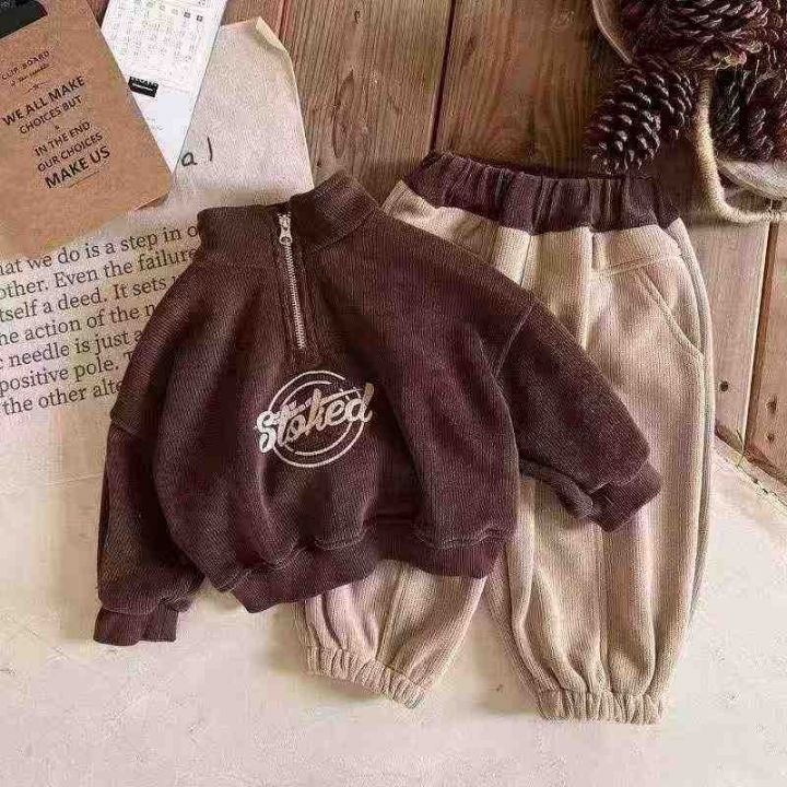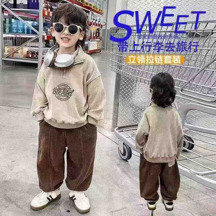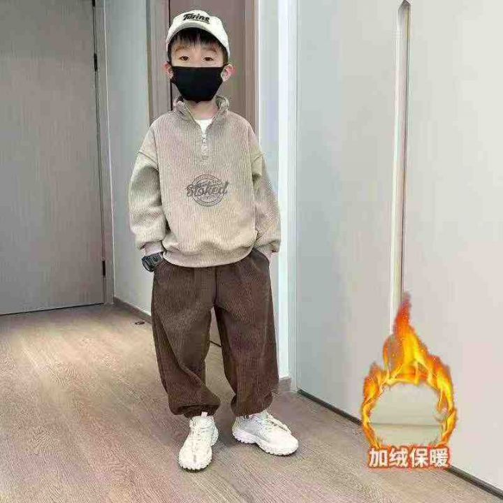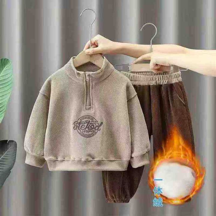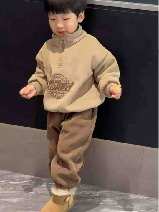 韩版儿童加绒保暖立领字母卫衣卫裤男童套装,数量:64...