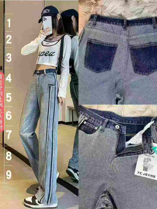 网络爆款高腰阔腿牛仔裤女泫雅风秋冬新款显瘦蓝色拖地牛仔直筒裤,品质手感非常好,内里包边,数量101条,独立拉链袋包装,防伪扣带吊牌,尺码s-2xl码,超低价12.5秒杀