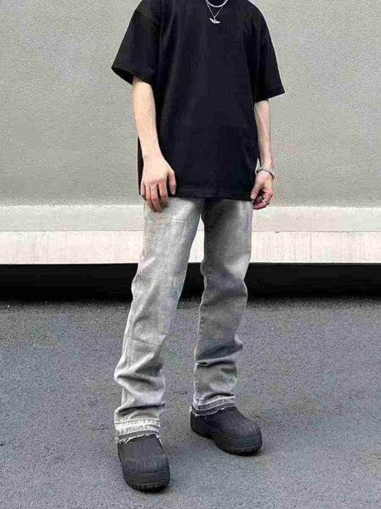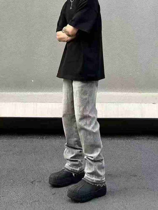 潮牌男装牛仔裤☕️150条全清11.8元,码数S M,正品独立包装,美式复古街头水洗做旧灰色阔腿裤宽松休闲百搭情侣直筒牛仔裤