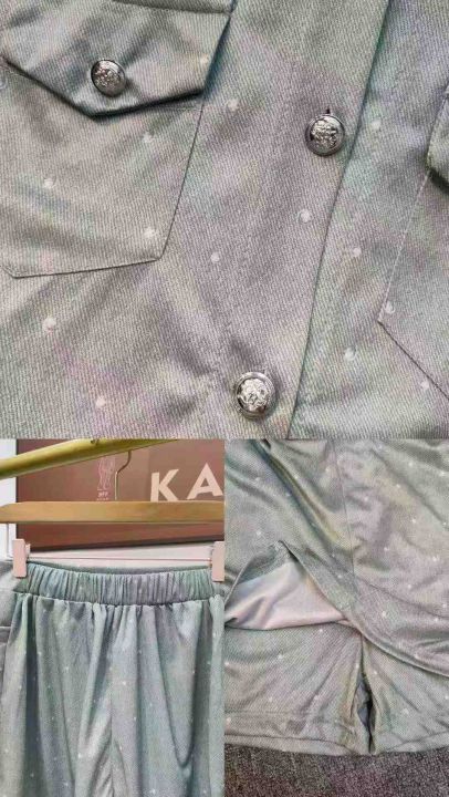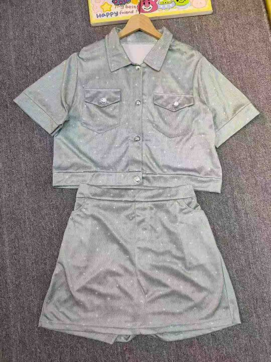 1270套时尚靓妹女装夏季休闲套装裤裙 上衣纽扣解 半松紧腰裤裙有口袋,单款单色 码数2-6码(M-3XL)独立包装。