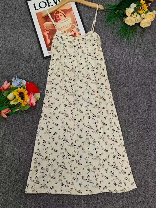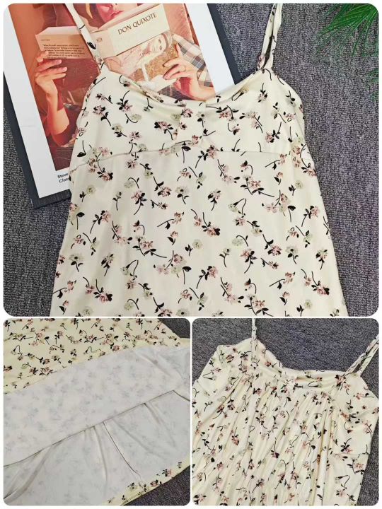 9.9清天猫仓回收155件洋气淑女碎花米黄色吊带连衣裙,...