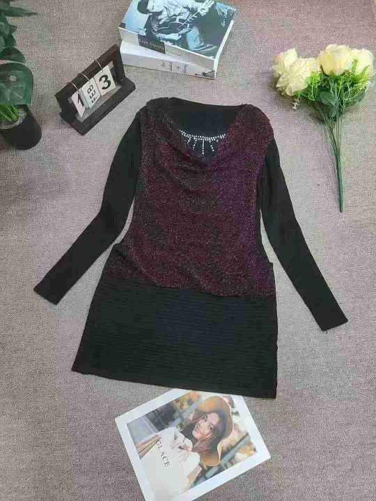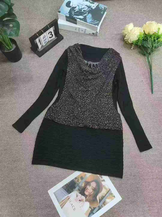 时尚堆堆领百搭设计感套头钉珠针织连衣裙,独立包装,均码,470件,清7.5,分➕1