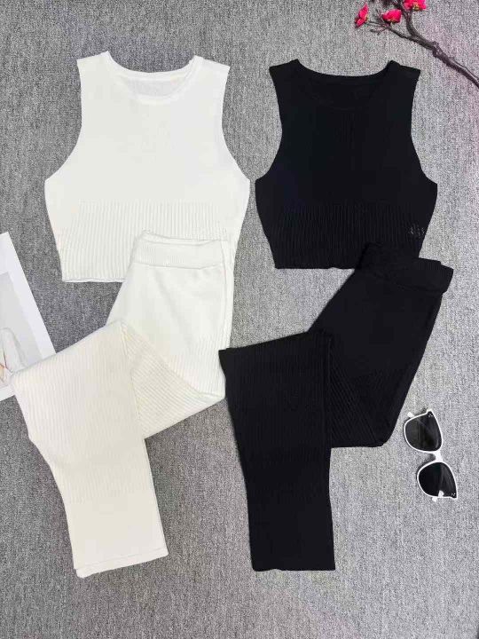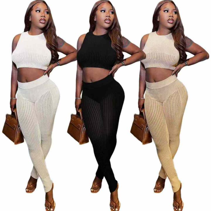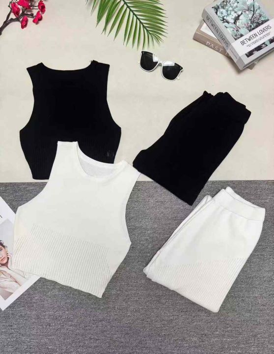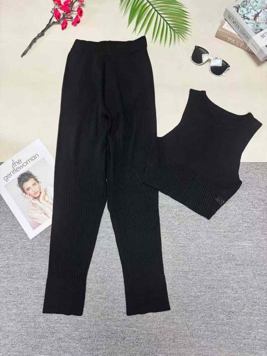 洋气性感显瘦针织衫短款背心加长裤两件套,整款两色,数量295套,码数S-2XL,高弹力品质好,有独立包装。