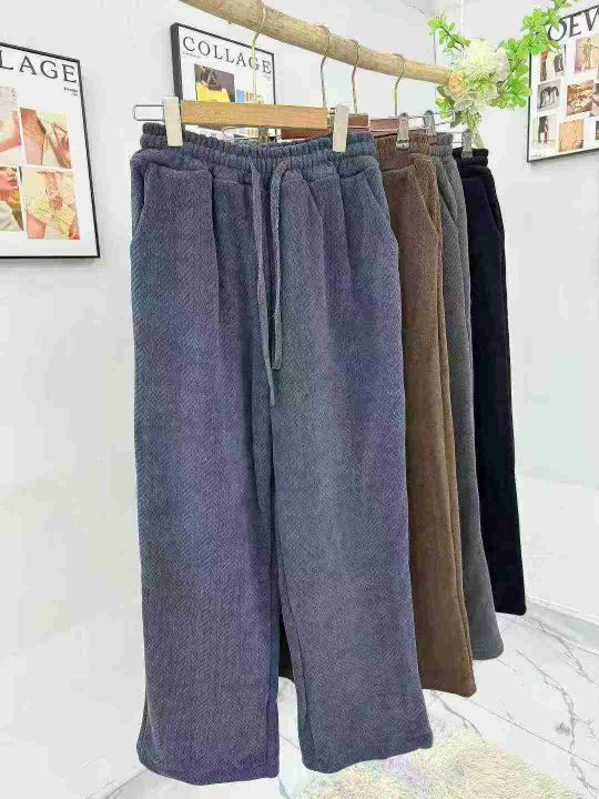 雪尼尔人字纹阔腿裤女秋冬季休闲直筒高腰加绒长裤,数量260件,码数S-L,独立包装,货品干净漂亮!