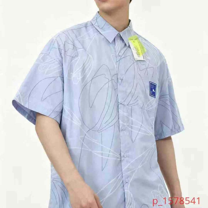 美式复古小众潮牌印花短袖衬衫男士时髦慵懒休闲度假...