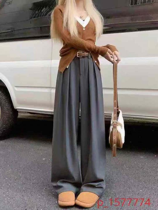 [月亮]:高品质垂感阔腿直筒休闲女士西装西裤