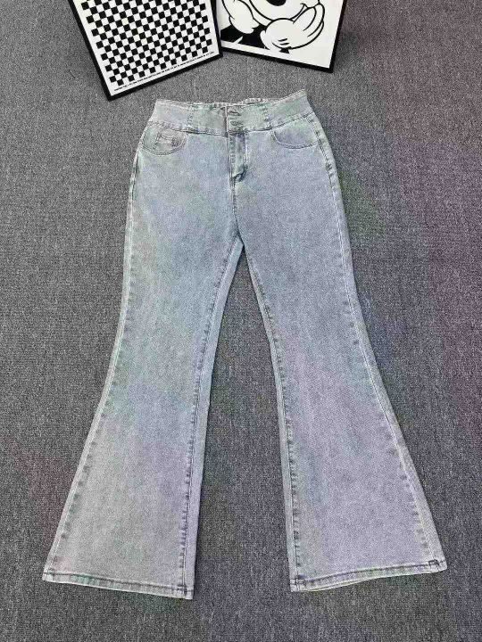 高弹力网红高腰喇叭牛仔裤女,单款四色,独立包装带吊...
