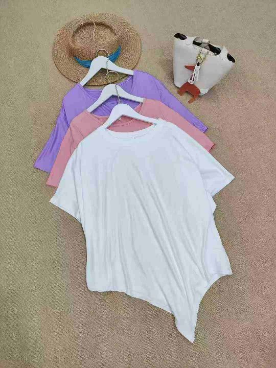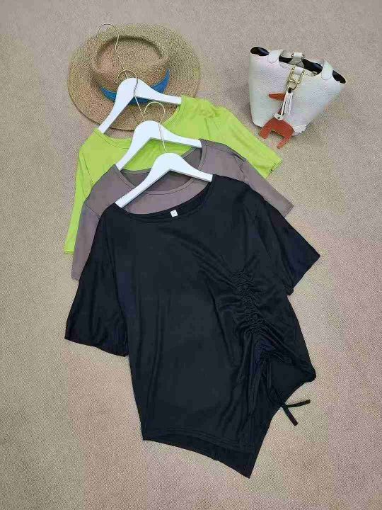 [月亮]:不规则抽绳收腰设计休闲宽松T恤
