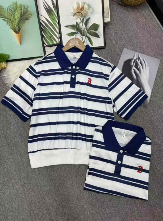 正肩短袖t恤女短款辣妹小众条纹翻领polo衫,独立包装,后领包边,重工刺绣,码数1-5点(S-2XL),数量616件,分货加1,货号109#17