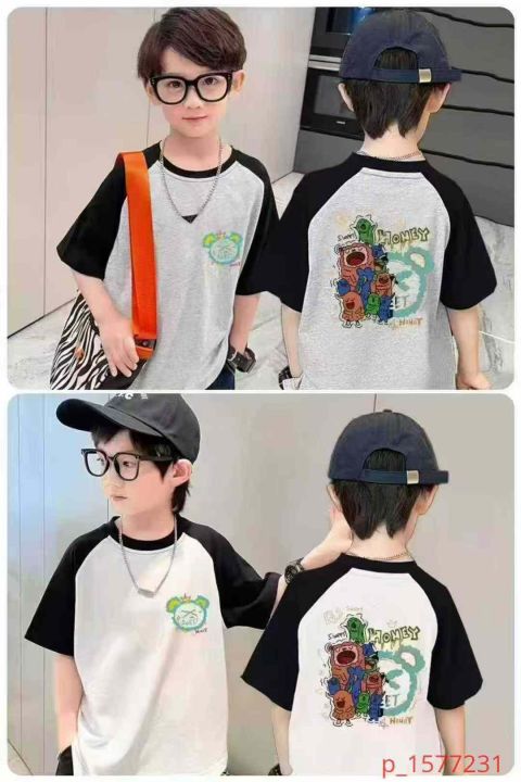 5.9清2050件卡通可爱插肩袖儿童纯棉短袖T恤,码数90-1...