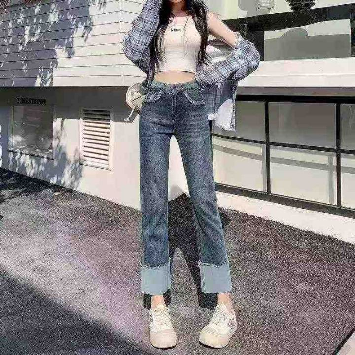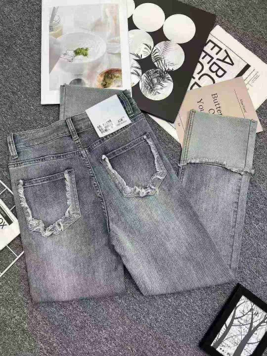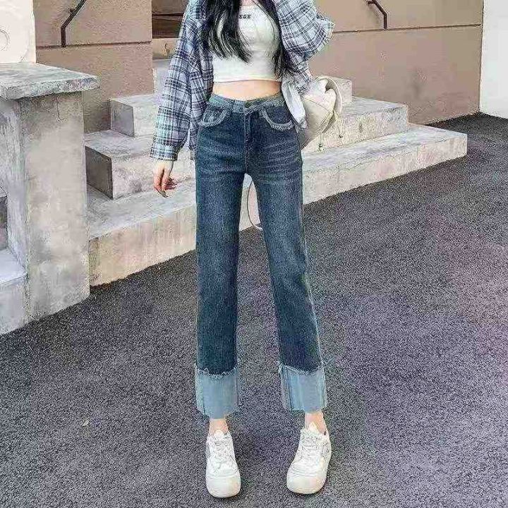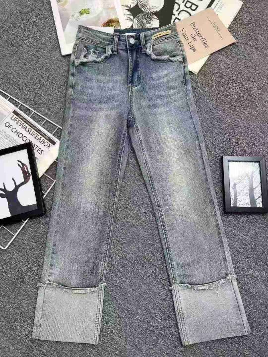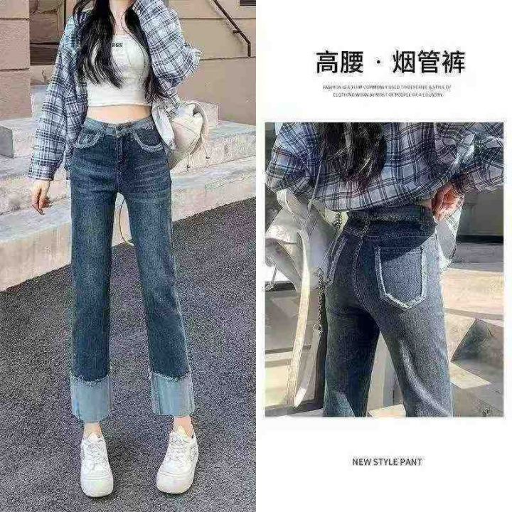 ☕️新款高弹力毛边烟管裤简约拼接撞色腰直筒窄版牛仔裤女九分裤150条全清11.8元 ,码数SM ,独立包装。