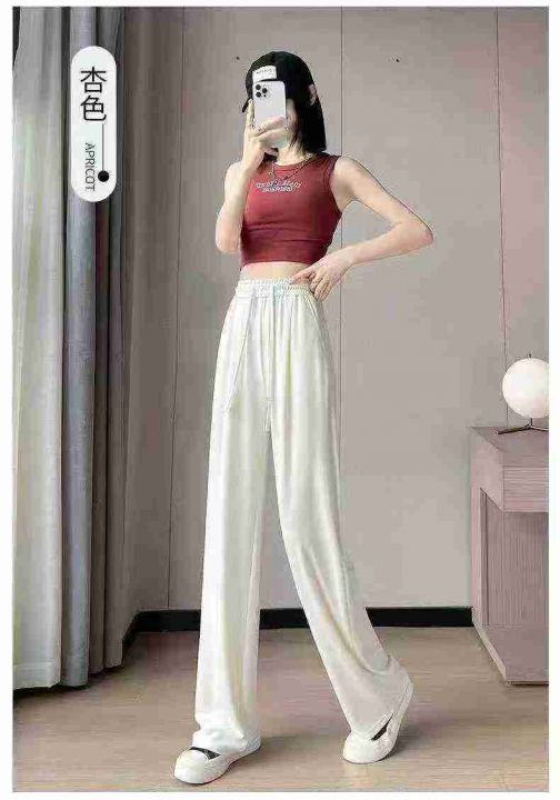天猫精选900条 在售款,阔腿休闲高腰垂感十足冰丝裤,整款三色,裤头内里有...