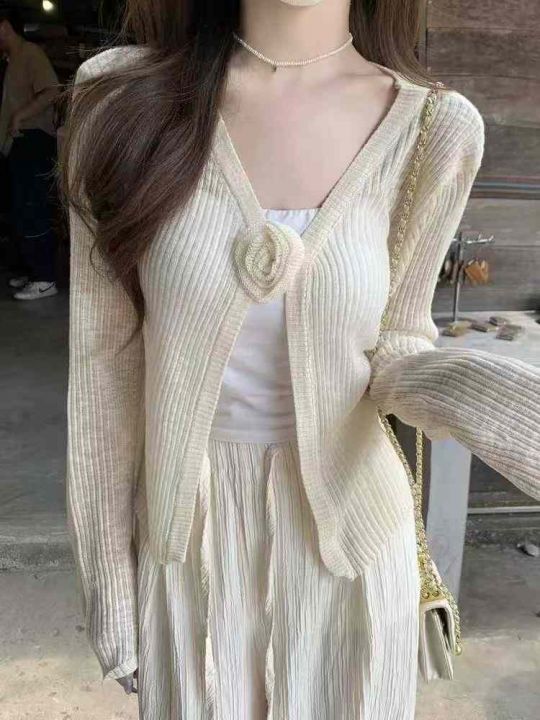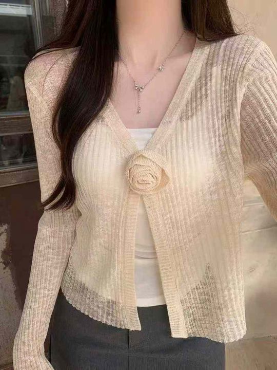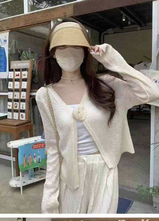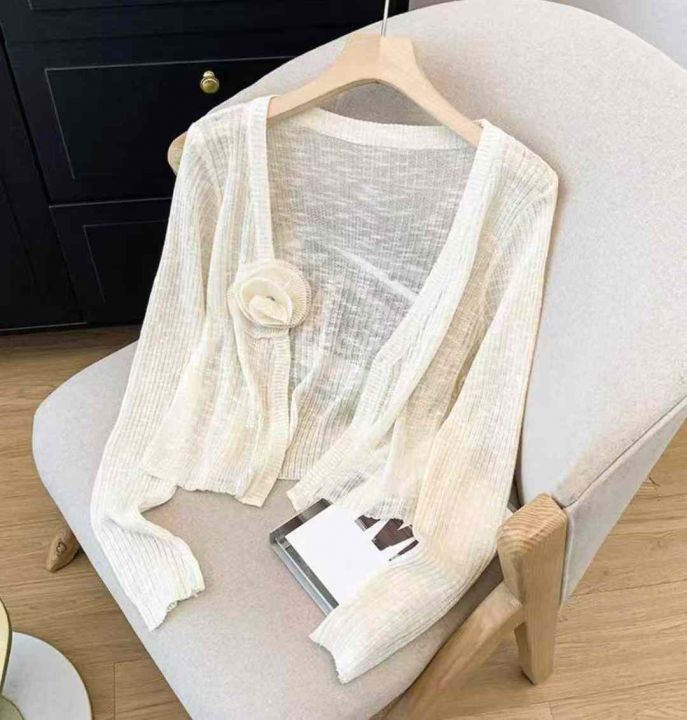 早秋新款韩版宽松甜美花朵竹节冰麻长袖针织开衫,独立...