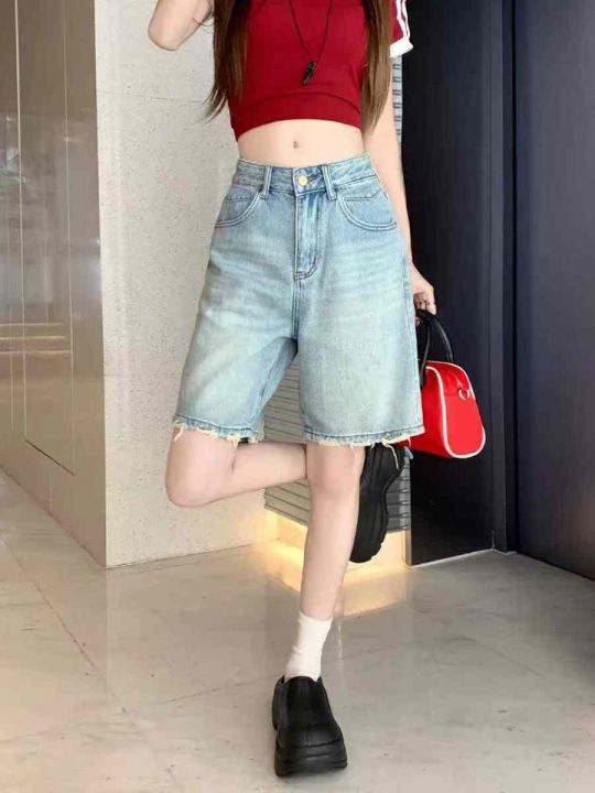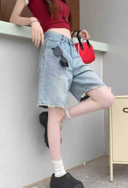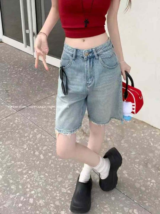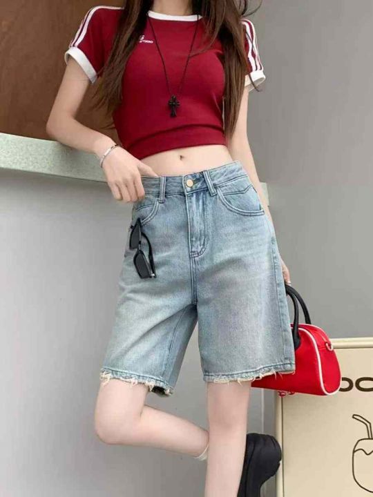 夏季新款高品质洗水棉网红爆款阔腿牛仔5分裤,独立包...