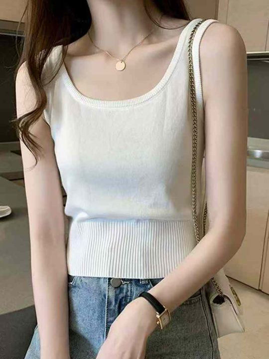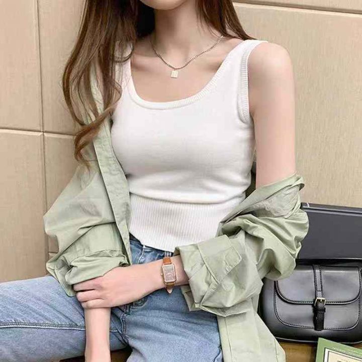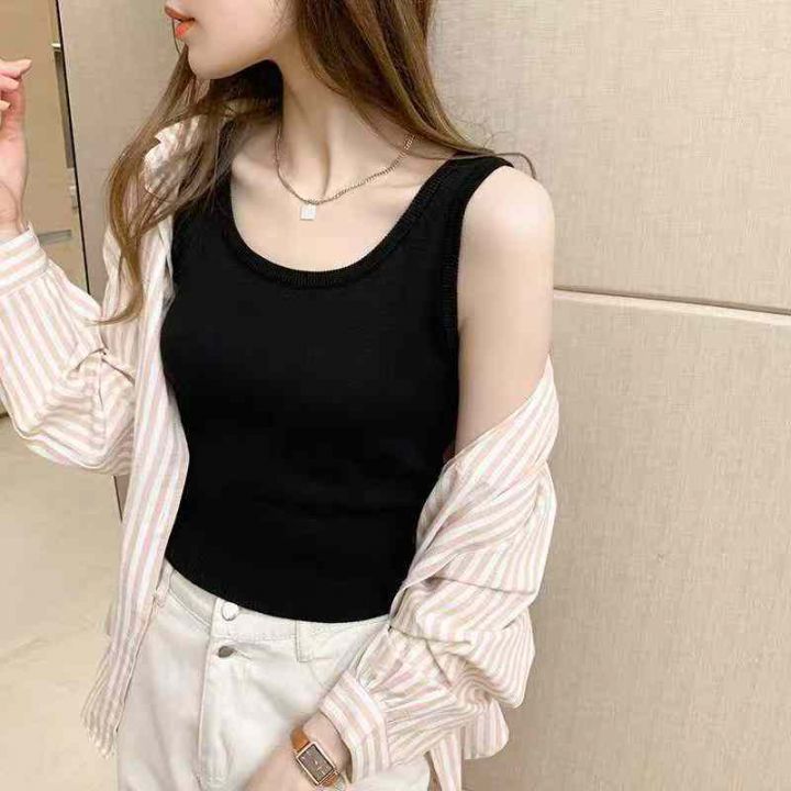夏秋季新款净版简约百搭宽松内搭针织吊带背心,独立包...