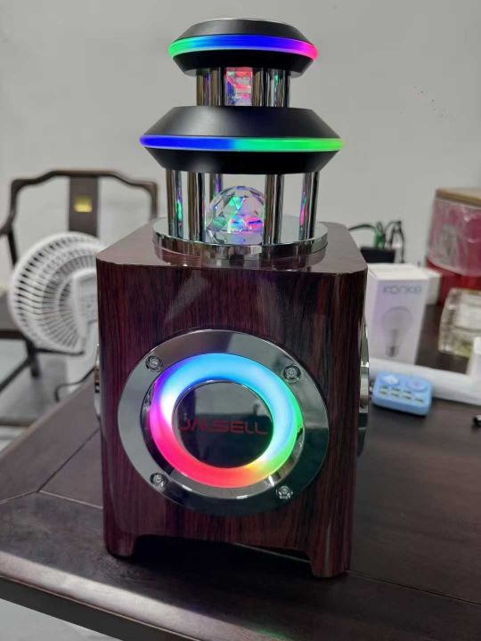 JALSELL JS-1000蓝牙音箱,木纹色,带遥控器,支持TF卡播放和蓝牙5.3连接RGB炫彩灯效,音质清晰,80W大功率,4寸全频扬声器+40mm高音单元,支持APE/FLAC/MP3播放,TWS左右声道自动分,全新未拆封,原装包装完整。