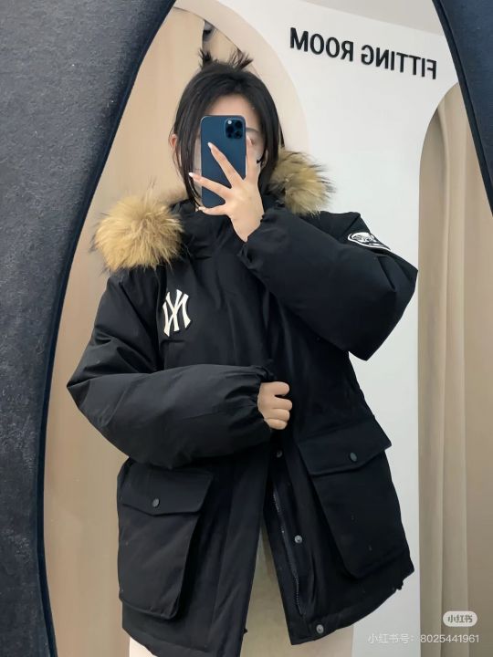 Mlb羽绒可以分货了大毛领徽章款