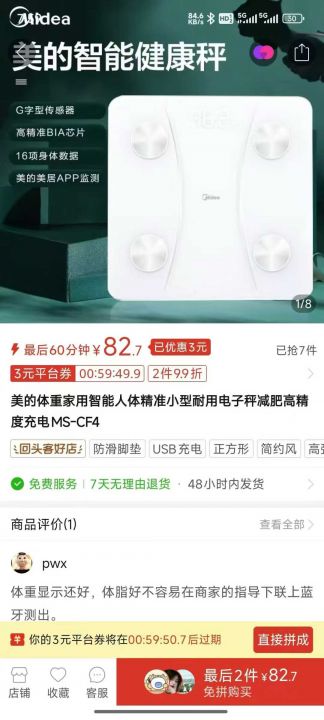 美的体脂秤,1400台,随手礼最佳选品