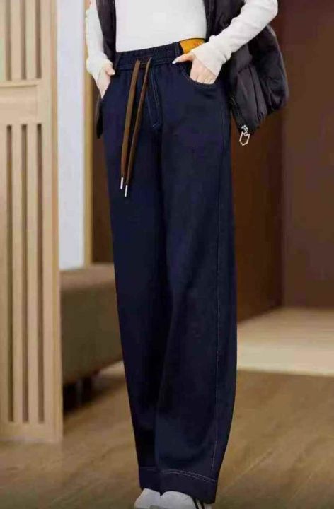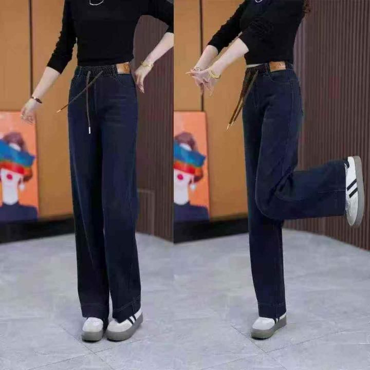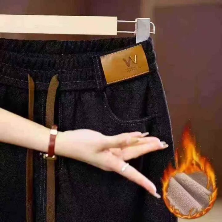 ☕️大码松紧腰加绒加厚牛仔裤