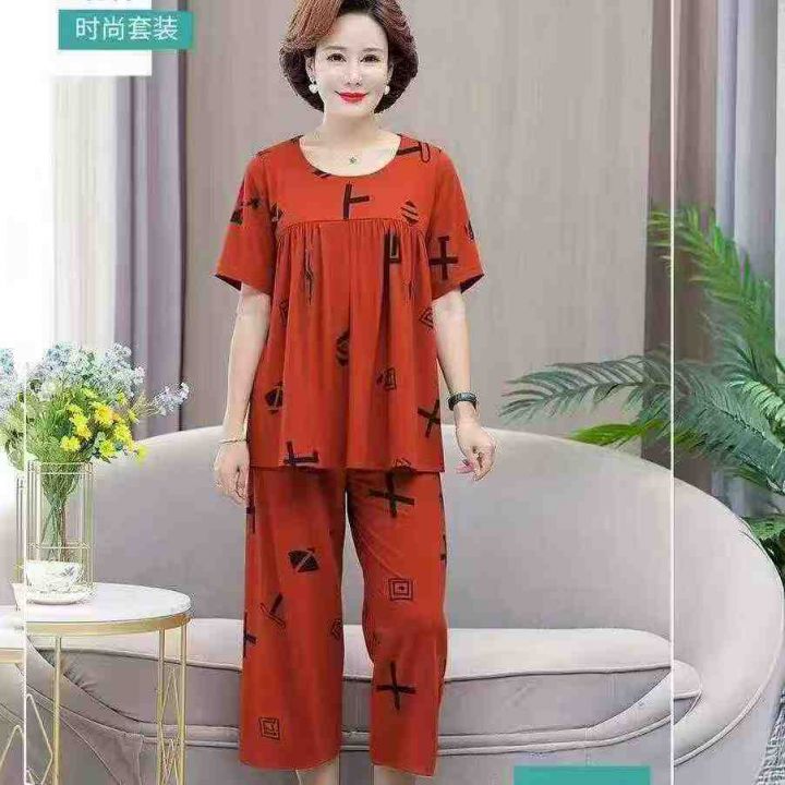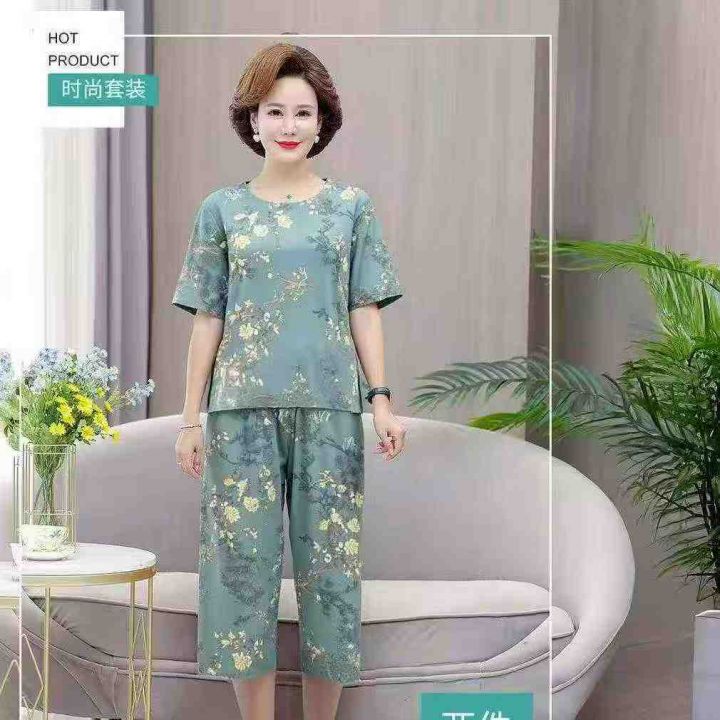 妈妈款夏装套装短袖t恤两件套宽松上衣,数量:2450套,码数:1-2-3-4-5-6-7(S-M-L-XL-2XL-3XL-4XL),有独立包装,5.9元清