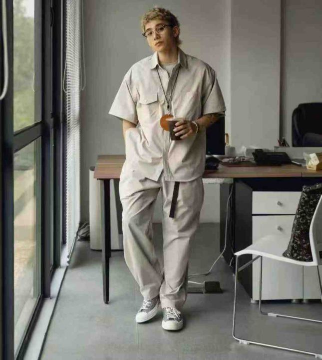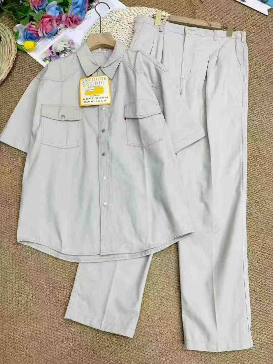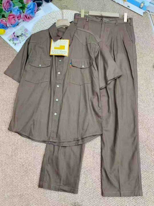 工装短袖衬衫套装男,数量:330套,码数:L-XL,有独立包装,14.9元清