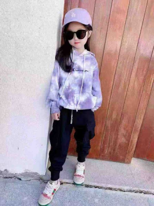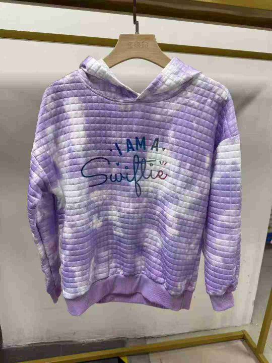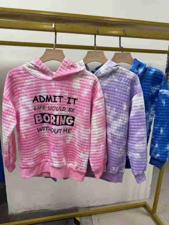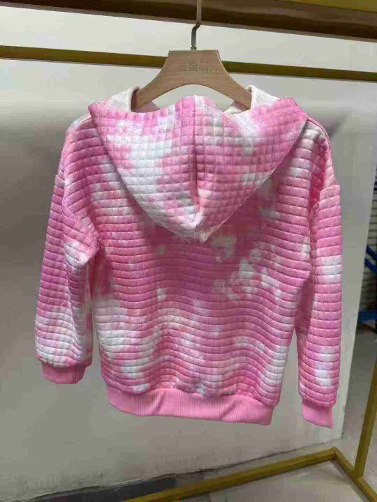 童装华夫格款彩色扎染连帽卫衣女高颜值韩版印花春秋簿款上衣中大童款