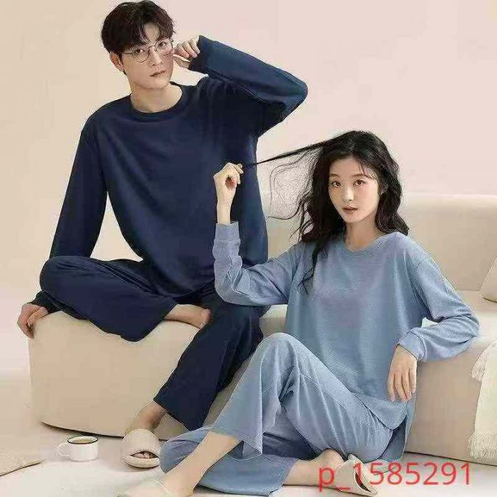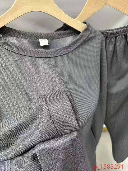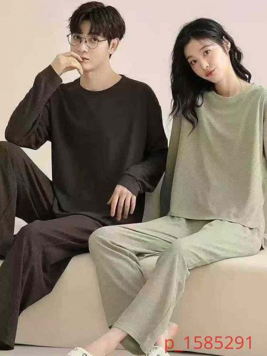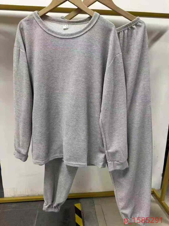 全清价6.9华夫格情侣长袖套装春秋季薄款休闲简约家居...