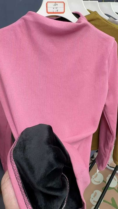 女士95棉秋冬加绒加厚打底上衣