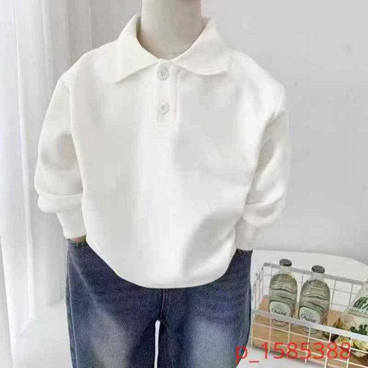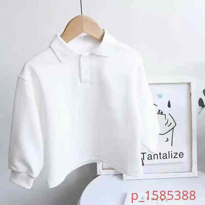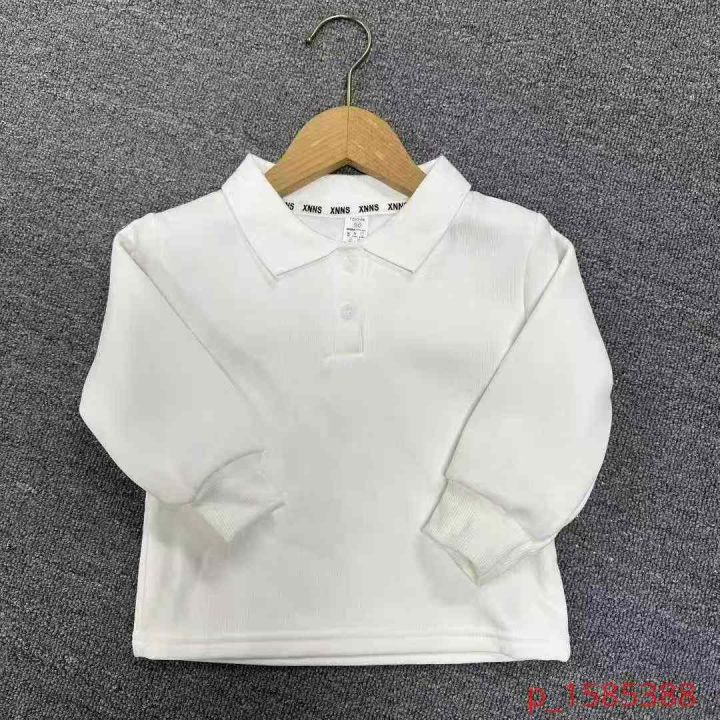 童装bb绒白色长袖Polo衫卫衣加绒款儿童帅气休闲上衣打底衫 103件 90-150码 _@_@