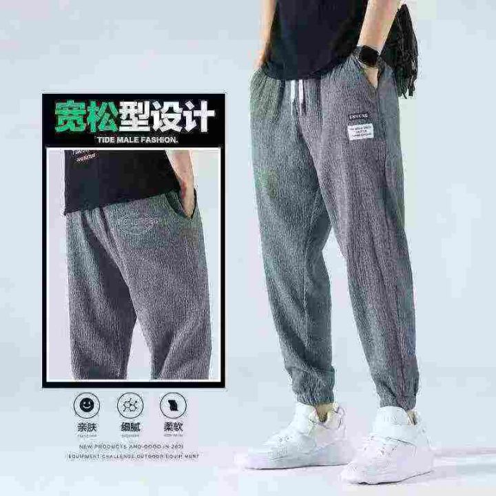 裤子男夏季薄款冰丝韩版潮流修身束脚运动裤裤,整款3色,独立包装,货品干净,M-5XL码,2415件,6.8清,分货加1