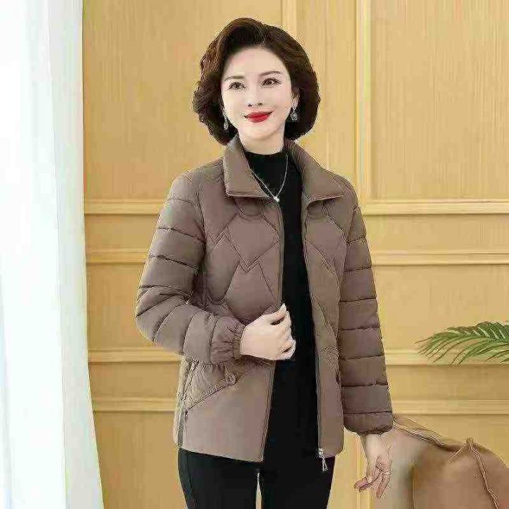 秋冬羽绒棉衣中老年妈妈女士洋气立领时尚轻薄棉服(黑...