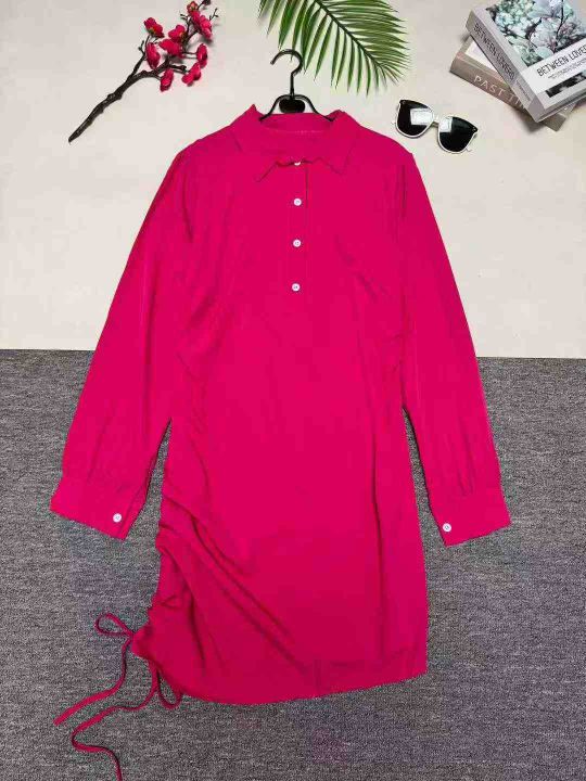 8.5清欧美时尚新款侧边抽绳纯色中长款衬衣连衣裙,数...