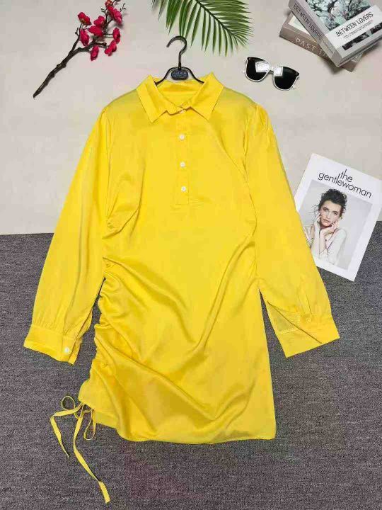 欧美时尚新款侧边抽绳纯色中长款衬衣连衣裙,数量1536条,码数S-2XL,整款多色,侧边有拉链设计,大货白色多,品质好,有独立包装。