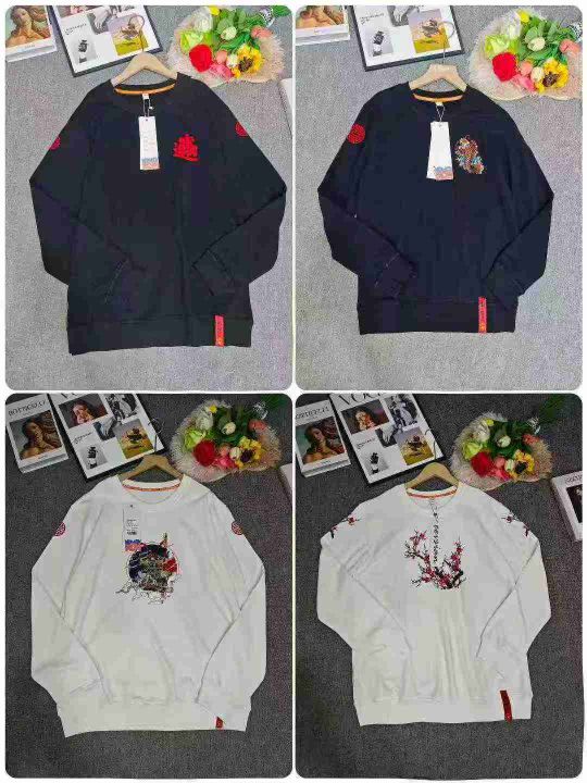 实体供应链回收3400件国风纯棉潮牌重工重磅刺绣圆领舒卫衣,码数S-5XL。面料柔软舒适,黑白色系为主,万针刺绣工艺,高克重面料,中山货做工非常好,全部独立包装!分货➕1