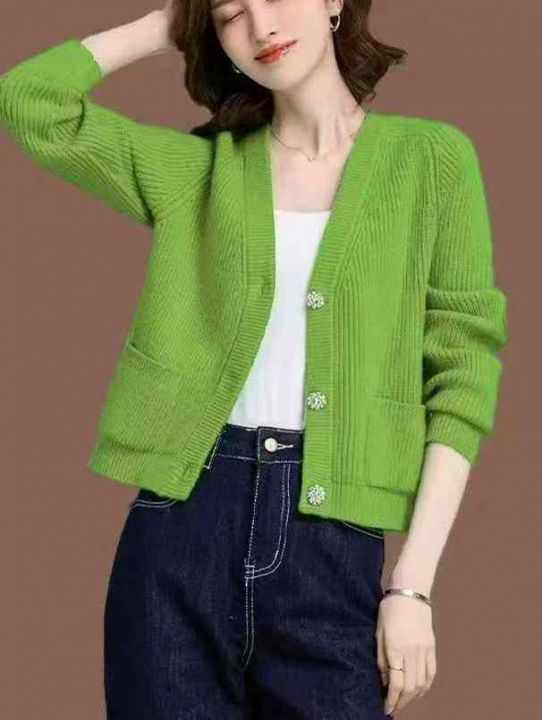 早秋新款V领宽松慵懒风针织毛衣开衫,独立包装,均码...