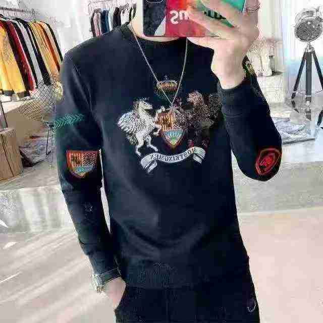 加绒卫衣,时尚潮牌男装卫衣不倒绒圆领刺绣拼接卫衣,920件独立包装M到5XL...