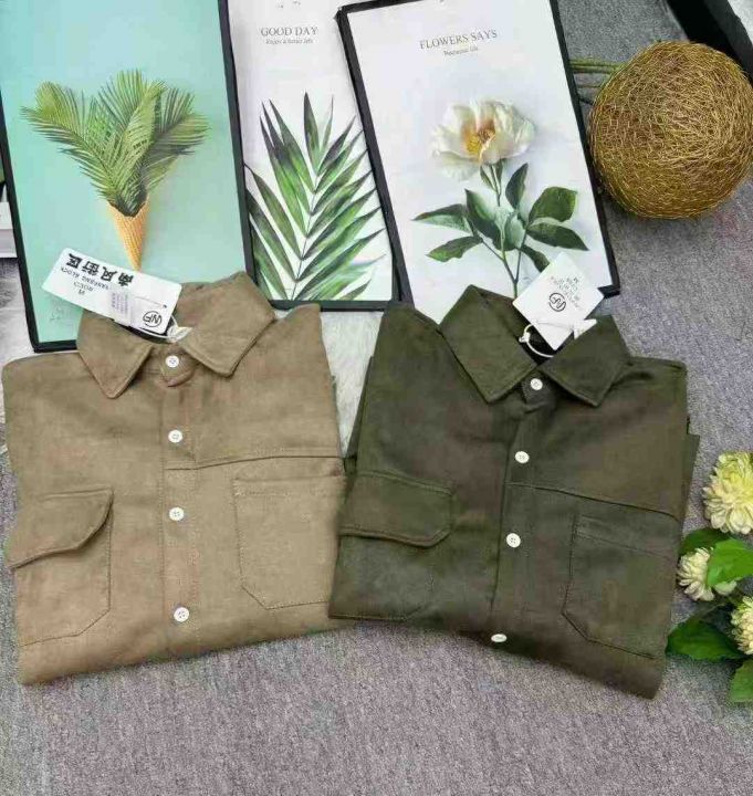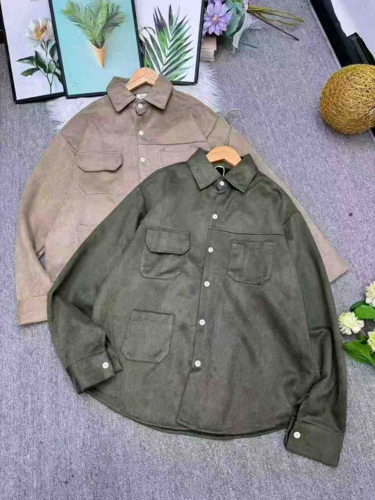 全清价10.8春秋季日系复古宽松工装衬衫男女生麂皮绒基...
