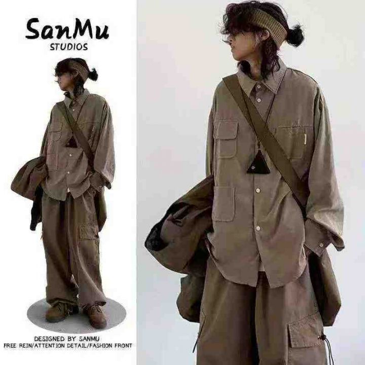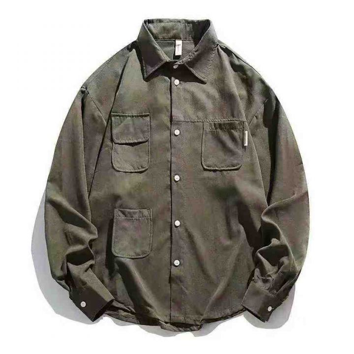 春秋季日系复古宽松工装衬衫男女生麂皮绒基础款多口袋休闲外套潮,数量:237件,码数:M-2XL,分货➕1,(货号105/5)