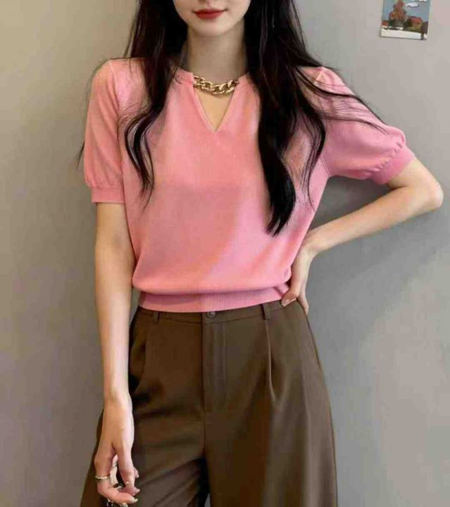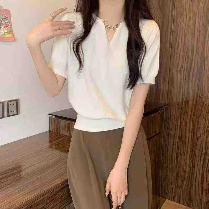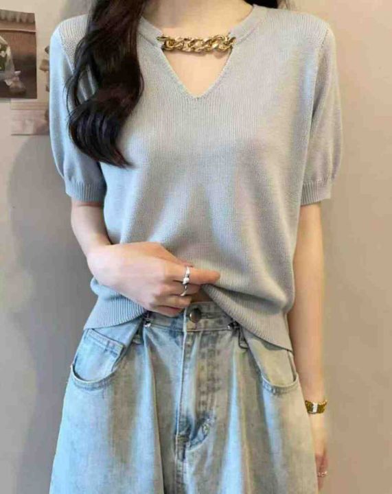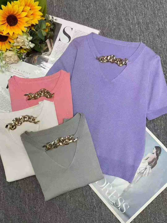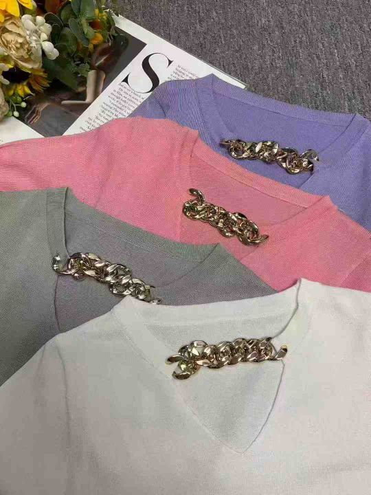 夏季新款链条设计感高腰甜辣妹风潮流小众针织短袖,独立包装,均码面料柔软舒适弹力大,80件,全清6.9元超低价秒杀!