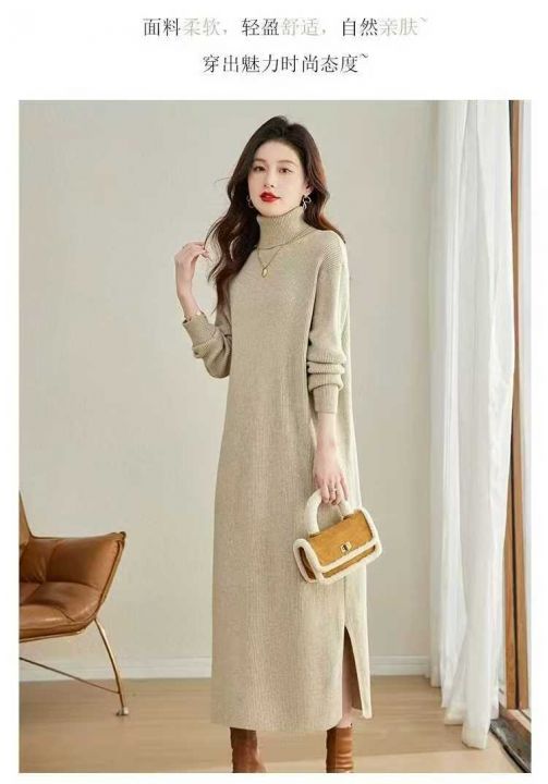 捡漏款,冬季新款法式高领收腰显瘦针织毛衣连衣裙,独...