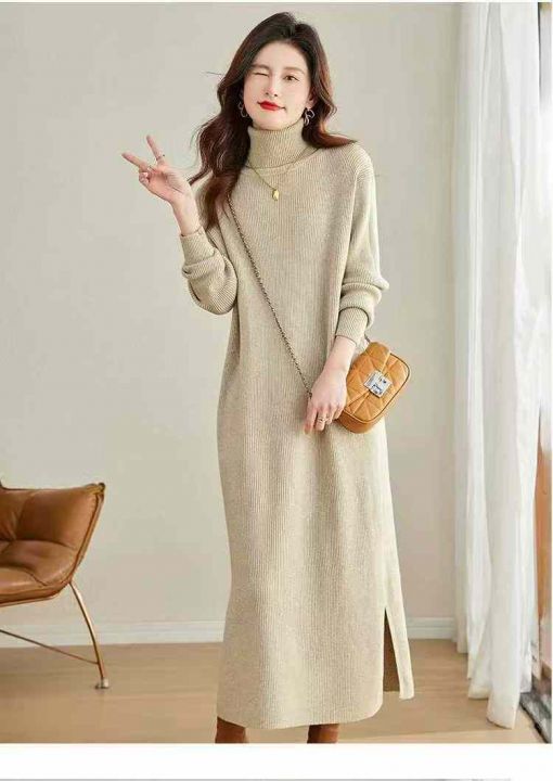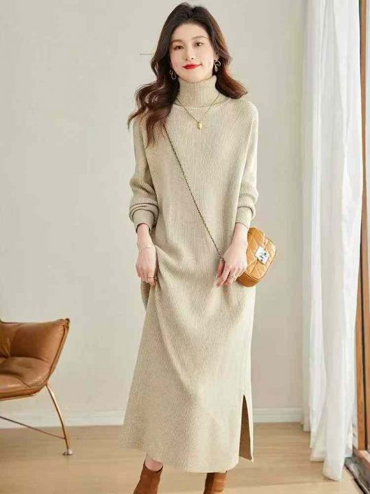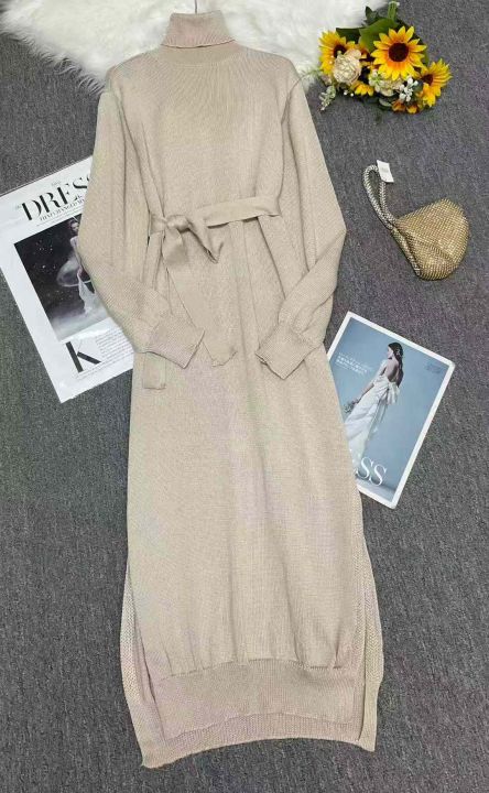 捡漏款,冬季新款法式高领收腰显瘦针织毛衣连衣裙,独...