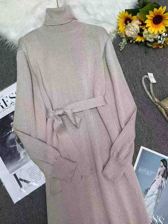 捡漏款,冬季新款法式高领收腰显瘦针织毛衣连衣裙,独...
