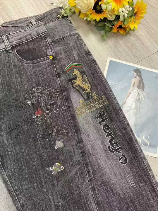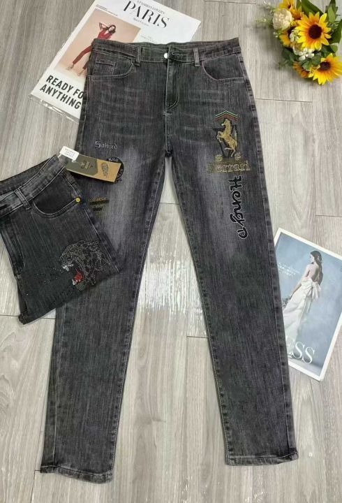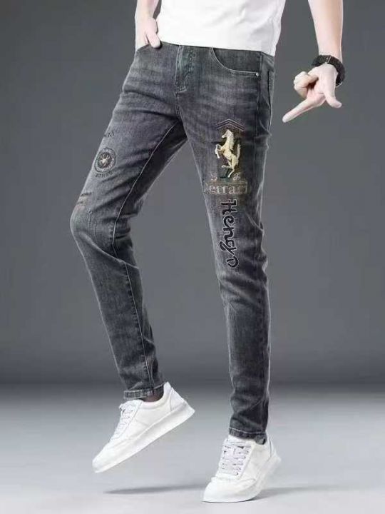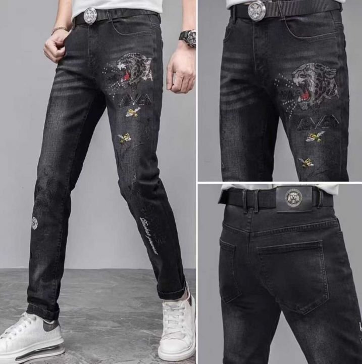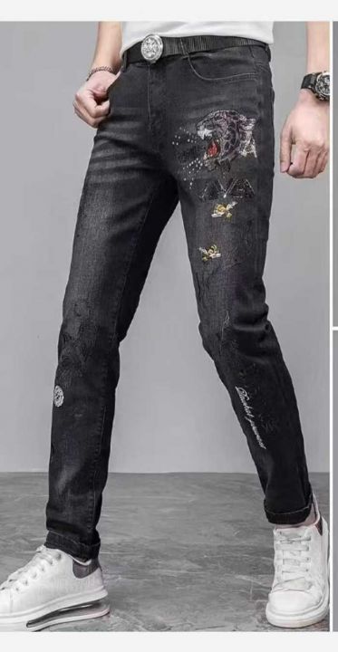春秋新款弹力个性时尚帅气潮牌刺绣烫钻设计款男士牛仔...