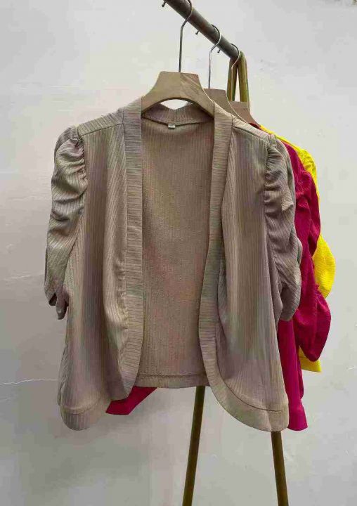 662件短款开衫外搭披肩外套。袖子褶皱设计,面料舒适...
