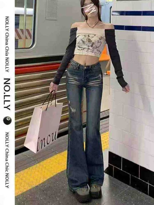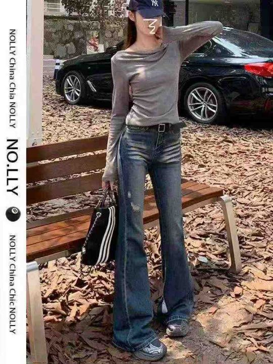 万佳好货☕️高弹力设计高腰微喇牛仔裤女新款美式高街...