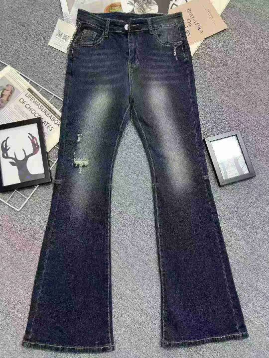 万佳好货☕️高弹力设计高腰微喇牛仔裤女新款美式高街复古蓝破洞马蹄裤60条全清14.8元 码数XL (110-140斤)高品质正品独立包装。
